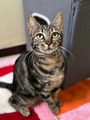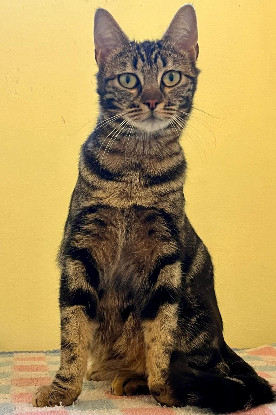 Madison est une adorable chatte tigrée d'un an, qui attend avec impatience de poser ses valises dans une famille aimante. Sa douceur, sa tranquilité et son besoin d'attention font d'elle une compagne idéale pour un foyer calme, chaleureux et attentionné.
