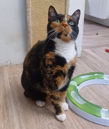 Louna pourra s’entendre avec un autre chat non dominant et pourra être adoptée avec un chien qui est gentil avec les chats.