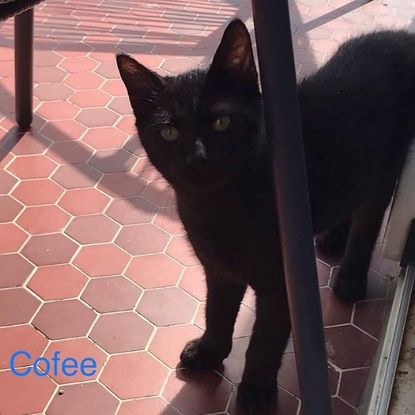 Cofee, petit mâle qui a entre 3 et 4 mois. Très câlin et calme Il est ok enfants, chats et chien Visible à Saint Just d’Ardèche chez Céline, au 0673913159.