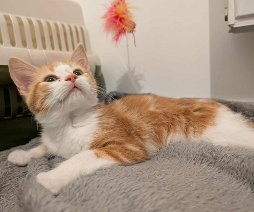 Une fois en confiance, c'est un chaton idéal pour pratiquer la ronronthérapie, il est curieux et joueur.
