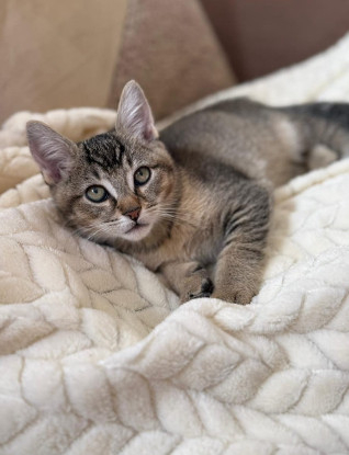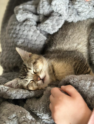 Je suis un chaton très câlin, calme, mais aussi curieux et joueur. J’adore courir, jouer avec tout ce qui bouge, puis faire de grandes siestes dans les bras ou sur un petit coussin bien moelleux.