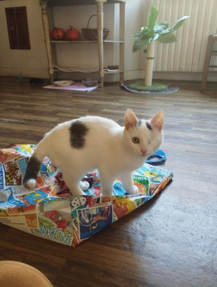 Aujourd'hui il a 4 mois. C'est un amour plein de vie avec l'oeil qui pétille. Il est tres calin, ronron, joueur et adore se lover dans les bras et dormir avec les humains.
