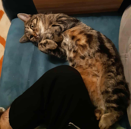 Très bavarde et expressive, elle saura montrer quand elle a besoin de calme mais ne sort jamais les griffes et se laisse porter et manipuler sans souci.