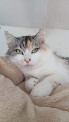 Elle est encore un peu peureuse. C’est une chatte en recherche de câlin, elle est douce et affectueuse. Elle est très attachante.