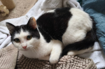 Ce beau jeune chat noir et blanc a tout d'un petit gentleman tranquille.