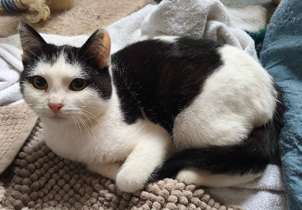 Sa famille d'accueil le décrit comme un petit "vieux chat dans un corps de chaton !", posé, discret et toujours apaisant à avoir près de soi.