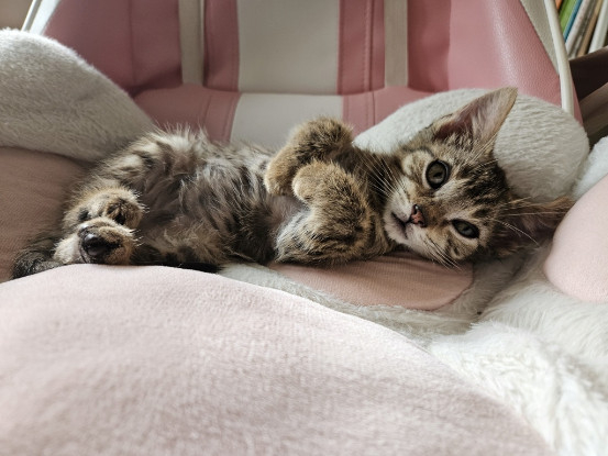 Nous cherchons pour ce petit chat merveilleux un foyer avec déjà au moins un chat présent car il n'a pas bénéficié d'un sevrage normal (car elle a été sauvée à seulement 5 semaines contre 12 semaines pour un bon sevrage), et et a besoin de continuer l'acquisition des codes félins.