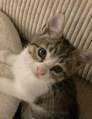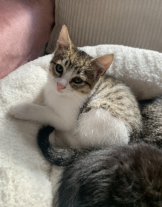 Petit chaton de 2 mois ½ très sociable, gai, curieux, et super dynamique. Il a quand même des moments de calme pendant lesquels il sait se montrer tendre et câlin. Un petit chenapan qui va vous faire craquer !
