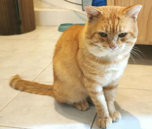 C’est une grosse peluche, calme, qui dort beaucoup et recherche avant tout la présence humaine. Malgré son passé dehors, il n’a pas une once d’agressivité : seules quelques petites cicatrices sur son nez et un pelage encore un peu fatigué.