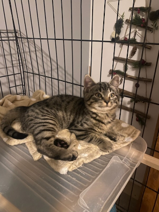 Figolu est un chaton joueur plus calme que son frère Filou. C'est un beau tigré comme on les aime. Un tigre miniature. Le prix d'adoption comprend la sterilisation qui sera à faire