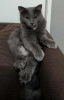 Aron ne miaule pas, il préfère venir se frotter dans vos jambes pour demander quelque chose. Il apprend à aimer les câlins.