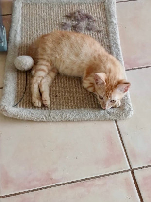 HAMISH , petit chaton au pelage tigré roux, a été sorti de la fourrière de Guadeloupe in extremis.