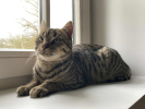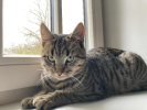 Un regard magnifique et expressif ! Une beauté de chat tigré, très gentil et parfois timide qui serait ravi d'avoir un copain chat à ses côtés. Timide au 1er abord, c'est un chat très gentil, calme qui accordera sa confiance très rapidement.