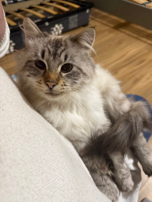 Une fois le lien créé, c’est un amour : ultra câlin, il adore se blottir sur les genoux et… ne plus en bouger ! Si vous tentez de l’abandonner sans sa permission, Monsieur proteste : un vrai petit prince avec ses petites exigences, mais toujours plein de tendresse.