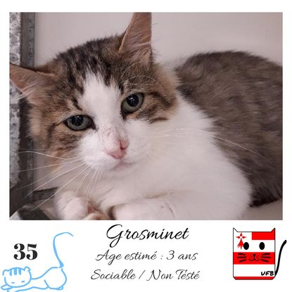 URGENCE EUTHANASIE ! Grosminet est un mâle de 3 ans sociable qui vous attend dans une fourrière du 35. ATTENTION SORTIE AU PLUS TARD LE 23/10/2020 (avant euthanasie) ! Pour adopter, c'est facile : ➡️ On se rend sur la page facebook d'Urgence Fourrière de Bretagne (UFB) -> https://www.facebook.com/sosfourrieresbreizh/ ➡️ On vient en message privé sur la page UFB ➡️ On remplit le questionnaire ➡️ Si le questionnaire est validé, on se rend disponible pour la pré-visite ➡️ On se rend aussi disponible pour venir chercher le loulou en fourrière Les chats sortent de fourrière primo-vaccinés et identifiés. Restera à charge de l’adoptant le rappel de vaccin et la stérilisation qui est OBLIGATOIRE. Les femelles en fourrière ayant été trouvées dans la rue, il y a fort à parier que nombre d'entre elles en âge de l'être soient gestantes ... ---- A PROPOS D'URGENCE FOURRIERE DE BRETAGNE (UFB) Nous sommes un COLLECTIF d'ASSOCIATIONS DE PROTECTION ANIMALE (qui rassemble notamment Moustaches et Compagnie, Bêtes de Scène, les Pachas, Chats Libres de Berné, etc, etc....) Le BUT de ce collectif d'associations est donc de SORTIR ces animaux des fourrières surchargées en les faisant ADOPTER de manière LEGALE par des familles ou en leur trouvant des FAMILLES D'ACCUEIL lorsque des places en association se libèrent.
