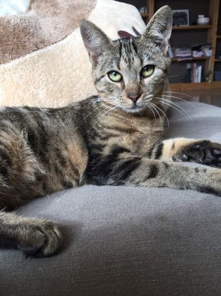 Voici rocket. Toute petite la vie ne l'a pas épargnée. Encore tout bébé, à la mort de sa mère écrasée par une voiture, elle avait trouvé refuge dans un terrier à lapin où elle a vécu terrée jusqu'à ce qu'on la capture. Elle n'avait plus de poil (la 3ème photo vous donne une idée de Roket lorsqu'on l'a trouvée)Elle aime les caresses . Encore un peu timide, vu ce qu'elle a vécu, elle aime bien être tranquille dans son coin. Une minette à rassurer qui lorsqu'elle aura confiance elle sera câline  Petit gabarit.  Qui saura lui faire oublier son dur passé en lui ouvrant son coeur ?En tente chien non testée