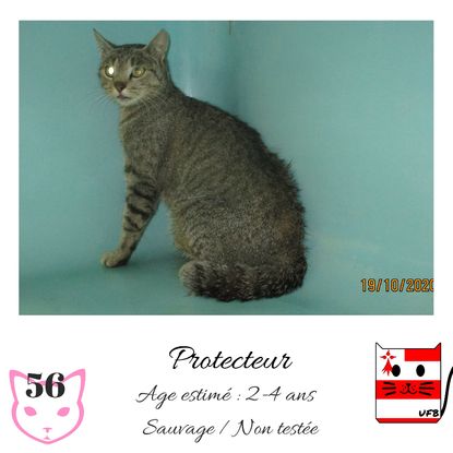URGENCE EUTHANASIE ! Protecteur est une femelle de 2-4 ans sauvageonne (un comportement normal en fourrière) qui vous attend dans une fourrière du 56. ATTENTION SORTIE AU PLUS TARD LE 30/10/2020 (avant euthanasie) ! Pour adopter, c'est facile : ➡️ On se rend sur la page facebook d'Urgence Fourrière de Bretagne (UFB) -> https://www.facebook.com/sosfourrieresbreizh/ ➡️ On vient en message privé sur la page UFB ➡️ On remplit le questionnaire ➡️ Si le questionnaire est validé, on se rend disponible pour la pré-visite ➡️ On se rend aussi disponible pour venir chercher le loulou en fourrière Les chats sortent de fourrière primo-vaccinés et identifiés. Restera à charge de l’adoptant le rappel de vaccin et la stérilisation qui est OBLIGATOIRE. Les femelles en fourrière ayant été trouvées dans la rue, il y a fort à parier que nombre d'entre elles en âge de l'être soient gestantes ... ---- A PROPOS D'URGENCE FOURRIERE DE BRETAGNE (UFB) Nous sommes un COLLECTIF d'ASSOCIATIONS DE PROTECTION ANIMALE (qui rassemble notamment Moustaches et Compagnie, Bêtes de Scène, les Pachas, Chats Libres de Berné, etc, etc....) Le BUT de ce collectif d'associations est donc de SORTIR ces animaux des fourrières surchargées en les faisant ADOPTER de manière LEGALE par des familles ou en leur trouvant des FAMILLES D'ACCUEIL lorsque des places en association se libèrent.
