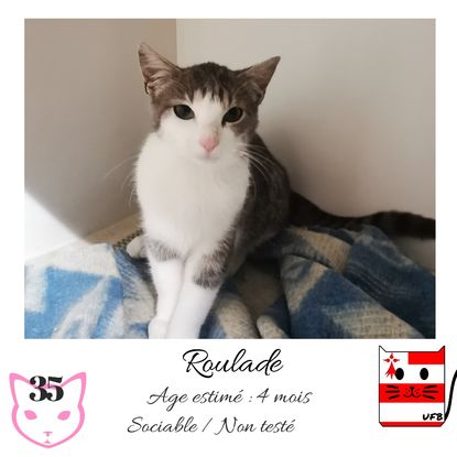 URGENCE EUTHANASIE ! Roulade est une femelle de 4 mois sociable qui vous attend dans une fourrière du 35. ATTENTION SORTIE AU PLUS TARD LE 30/10/2020 (avant euthanasie) ! Pour adopter, c'est facile : ➡️ On se rend sur la page facebook d'Urgence Fourrière de Bretagne (UFB) -> https://www.facebook.com/sosfourrieresbreizh/ ➡️ On vient en message privé sur la page UFB ➡️ On remplit le questionnaire ➡️ Si le questionnaire est validé, on se rend disponible pour la pré-visite ➡️ On se rend aussi disponible pour venir chercher le loulou en fourrière Les chats sortent de fourrière primo-vaccinés et identifiés. Restera à charge de l’adoptant le rappel de vaccin et la stérilisation qui est OBLIGATOIRE. Les femelles en fourrière ayant été trouvées dans la rue, il y a fort à parier que nombre d'entre elles en âge de l'être soient gestantes ... ---- A PROPOS D'URGENCE FOURRIERE DE BRETAGNE (UFB) Nous sommes un COLLECTIF d'ASSOCIATIONS DE PROTECTION ANIMALE (qui rassemble notamment Moustaches et Compagnie, Bêtes de Scène, les Pachas, Chats Libres de Berné, etc, etc....) Le BUT de ce collectif d'associations est donc de SORTIR ces animaux des fourrières surchargées en les faisant ADOPTER de manière LEGALE par des familles ou en leur trouvant des FAMILLES D'ACCUEIL lorsque des places en association se libèrent.