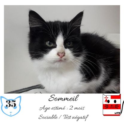 URGENCE EUTHANASIE ! Sommeil est un mâle de 2 mois sociable qui vous attend dans une fourrière du 35. ATTENTION SORTIE AU PLUS TARD LE 30/10/2020 (avant euthanasie) ! Pour adopter, c'est facile : ➡️ On se rend sur la page facebook d'Urgence Fourrière de Bretagne (UFB) -> https://www.facebook.com/sosfourrieresbreizh/ ➡️ On vient en message privé sur la page UFB ➡️ On remplit le questionnaire ➡️ Si le questionnaire est validé, on se rend disponible pour la pré-visite ➡️ On se rend aussi disponible pour venir chercher le loulou en fourrière Les chats sortent de fourrière primo-vaccinés et identifiés. Restera à charge de l’adoptant le rappel de vaccin et la stérilisation qui est OBLIGATOIRE. Les femelles en fourrière ayant été trouvées dans la rue, il y a fort à parier que nombre d'entre elles en âge de l'être soient gestantes ... ---- A PROPOS D'URGENCE FOURRIERE DE BRETAGNE (UFB) Nous sommes un COLLECTIF d'ASSOCIATIONS DE PROTECTION ANIMALE (qui rassemble notamment Moustaches et Compagnie, Bêtes de Scène, les Pachas, Chats Libres de Berné, etc, etc....) Le BUT de ce collectif d'associations est donc de SORTIR ces animaux des fourrières surchargées en les faisant ADOPTER de manière LEGALE par des familles ou en leur trouvant des FAMILLES D'ACCUEIL lorsque des places en association se libèrent.
