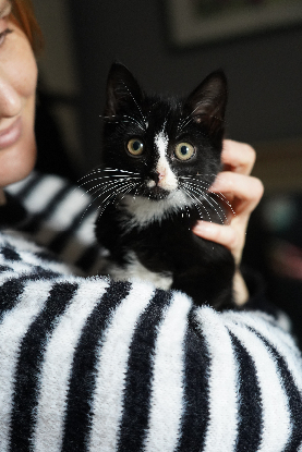Canelle est un chaton très câlin. Il patoune beaucoup. Il est très joueur et très gourmand (ne pas laisser de nourriture à trainer sous peine qu'il l'engloutisse...). Il supporte mal la solitude ou d'être mis a l'écart : une présence est donc recommandée pour lui (télétravail par exemple). Il a besoin de beaucoup d'amour.