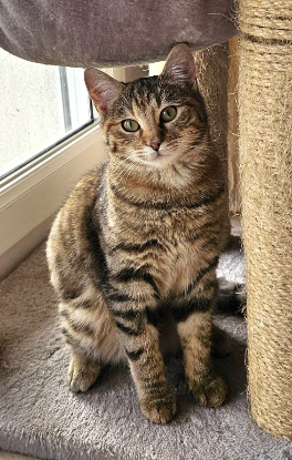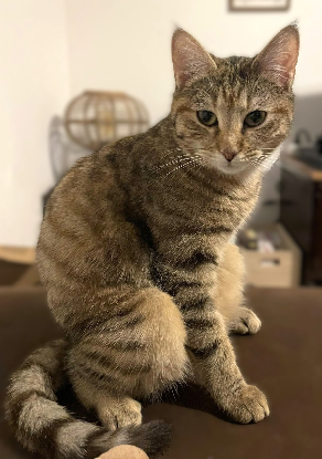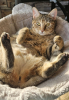 C'est une minette en pleine forme, elle a beaucoup d'énergie et demande beaucoup à jouer. Elle est très curieuse de tout ce qui l'entoure. C'est un vrai petit clown !