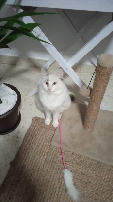C'est une adorable chatte, très gentille, curieuse et très affectueuse.