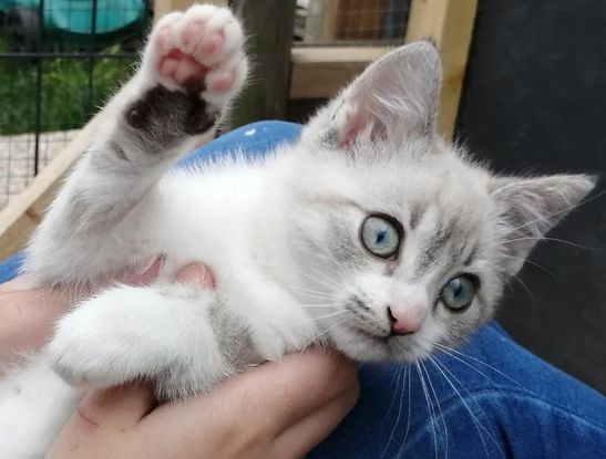 ARCHIE est un mâle blanc à marbrures grises à poils courts avec sa queue en pompon et ses yeux bleus Naissance estimée le 02 août 2020 de race chat type européen non-inscrit au LOOF. ARCHIE est un chaton très sociable, il adore les câlins, il est aussi très joueur et espiègle. Histoire : Trouvé errant par des vacanciers anglais avec ses deux frangins : Harry et William. Mâle Race : chat type européen non-inscrit au L.O.O.F. Date de naissance estimée le 02 août 2020 Identification par puce électronique Vacciné, testé FIV-/Felv - Vermifugé, déparasité, non stérilisé car trop jeune Pour devenir sa famille, n'hésitez pas à remplir le formulaire ci-dessous : https://www.chat-quiberon.com/formulaire-dadoption/