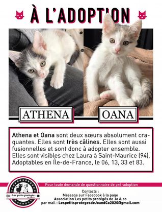 Les adoptions fonctionnent ainsi : envoi d’un questionnaire et prévisite à votre domicile par une de nos bénévoles avant adoption, pendant ce processus le ou les chats sont réservés pour vous donc merci de ne pas nous contacter si vous attendez des réponses ailleurs car vous empêchez les chats de trouver leur famille .