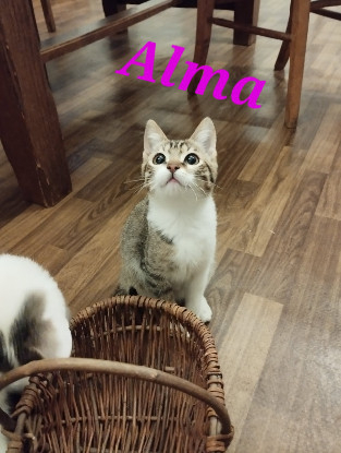 ALMA est un petit chaton né courant septembre. Elle fait partie d’une fratrie de trois chatons, issus d’une maman non stérilisée vivant chez un particulier.