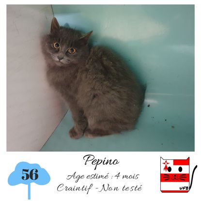 URGENCE EUTHANASIE ! Pepino est un mâle de 4 mois craintif (un comportement normal en fourrière) qui vous attend dans une fourrière du 56. ATTENTION SORTIE AU PLUS TARD LE 13/11/2020 (avant euthanasie) ! Pour adopter, c'est facile : ➡️ On se rend sur la page facebook d'Urgence Fourrière de Bretagne (UFB) -> https://www.facebook.com/sosfourrieresbreizh/ ➡️ On vient en message privé sur la page UFB ➡️ On remplit le questionnaire ➡️ Si le questionnaire est validé, on se rend disponible pour la pré-visite ➡️ On se rend aussi disponible pour venir chercher le loulou en fourrière Les chats sortent de fourrière primo-vaccinés et identifiés. Restera à charge de l’adoptant le rappel de vaccin et la stérilisation qui est OBLIGATOIRE. Les femelles en fourrière ayant été trouvées dans la rue, il y a fort à parier que nombre d'entre elles en âge de l'être soient gestantes ... ---- A PROPOS D'URGENCE FOURRIERE DE BRETAGNE (UFB) Nous sommes un COLLECTIF d'ASSOCIATIONS DE PROTECTION ANIMALE (qui rassemble notamment Moustaches et Compagnie, Bêtes de Scène, les Pachas, Chats Libres de Berné, etc, etc....) Le BUT de ce collectif d'associations est donc de SORTIR ces animaux des fourrières surchargées en les faisant ADOPTER de manière LEGALE par des familles ou en leur trouvant des FAMILLES D'ACCUEIL lorsque des places en association se libèrent.