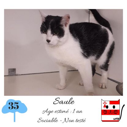 URGENCE EUTHANASIE ! Saule est un mâle de 1 an sociable qui vous attend dans une fourrière du 35. ATTENTION SORTIE AU PLUS TARD LE 13/11/2020 (avant euthanasie) ! Pour adopter, c'est facile : ➡️ On se rend sur la page facebook d'Urgence Fourrière de Bretagne (UFB) -> https://www.facebook.com/sosfourrieresbreizh/ ➡️ On vient en message privé sur la page UFB ➡️ On remplit le questionnaire ➡️ Si le questionnaire est validé, on se rend disponible pour la pré-visite ➡️ On se rend aussi disponible pour venir chercher le loulou en fourrière Les chats sortent de fourrière primo-vaccinés et identifiés. Restera à charge de l’adoptant le rappel de vaccin et la stérilisation qui est OBLIGATOIRE. Les femelles en fourrière ayant été trouvées dans la rue, il y a fort à parier que nombre d'entre elles en âge de l'être soient gestantes ... ---- A PROPOS D'URGENCE FOURRIERE DE BRETAGNE (UFB) Nous sommes un COLLECTIF d'ASSOCIATIONS DE PROTECTION ANIMALE (qui rassemble notamment Moustaches et Compagnie, Bêtes de Scène, les Pachas, Chats Libres de Berné, etc, etc....) Le BUT de ce collectif d'associations est donc de SORTIR ces animaux des fourrières surchargées en les faisant ADOPTER de manière LEGALE par des familles ou en leur trouvant des FAMILLES D'ACCUEIL lorsque des places en association se libèrent.
