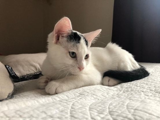 Chouffy est une petite chatte blanche et noire de 4 mois qui a été recueillie avec ses 3 sœurs quelques semaines après leur naissance. Elles ont eu le grand bonheur de grandir au contact de leur maman, une chatte sauvage restée avec elles 4 mois. Elles ont ainsi reçu tout l’amour maternel qu’elles méritaient.