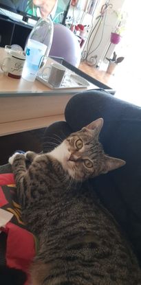 Organze 5 mois. Avec un peu de patience elle se laissera vite approcher et viendra même vous demander des caresses. Très joueuse, elle raffole de tout ce qu'elle trouve (plumeau, poussière, stylo, pieds...). Elle aime aussi les longues séances de câlins devant la télé. Organze est une petite timide, une adoption dans un foyer calme, à l'écoute et sans jeunes enfants semble donc conseillé.