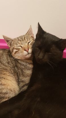 Tweed et Shantung sont 2 frères mâles de 5 mois. Tweed (tigré) est le plus à l'aise des deux et appréciera les séances de câlins et de jeux ! Shantung (noir) est beaucoup plus timide, mais il se laisse chouchouter quand il dort. Leur jouet préféré est une souris attachée à une ficelle à partir d'un bâton. Ils passeront une heure à le chasser et à lui sauter dessus. Qui craquera pour ces deux frères doux et attachants.