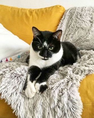 Frimousse a 9 ans. Vêtu de noir et blanc, Frimousse est un pacha qui, sous ses airs d’empereur, n’a en réalité qu’une seule idée en tête : obtenir un maximum de câlins.❤? Au début plutôt timide, il s'ouvrira à vous à force de patience et de douceur (et bien sûr, de nourriture) ? Il a besoin de beaucoup de présence humaine, sans laquelle il a du mal à sortir de sa cachette. Une fois dehors, c’est le festival des câlins ! ? Il se frotte, vous miaule dessus, et réclame des câlins en se roulant sur le dos. Comment résister ? Son poil épais et doux est un vrai bonheur à caresser et à peigner. Frimousse est une vraie guimauve : même tripoté par le vétérinaire, il s’est laissé faire très gentiment, sans jamais râler, ni sortir les griffes. Frimousse est aussi un gros gourmand : vous le verrez tout de suite, son petit bidou qui sort en dit long. ? À cause de ce surpoids, son alimentation est à surveiller. Plus important encore, il souffre d’un léger diabète, qui ne nécessite pas de piqûres, mais d’une alimentation adaptée. À cause de son poids sûrement, il n’est pas très adepte des escalades et acrobaties. En revanche, il adore se coucher contre nous quand nous sommes allongés sur le lit, ou encore jouer avec les pieds qui dépassent, un classique. ? Frimousse est OK chat ? Pour adopter Frimousse : https://ninelives.fr/adopter/