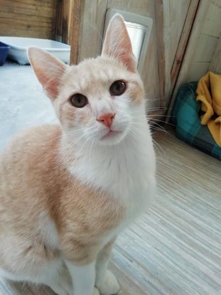 JOYEUX est un mâle crème et blanc à poils courts et yeux bleus Naissance estimée le 15 mai 2020 de race chat type européen non-inscrit au LOOF. JOYEUX est une chaton joueur. Il est timide lorsqu'il ne connait pas mais une fois en confiance il sait se transformé en petit coquin. Histoire : Joyeux est le fils de Blanche Neige et frère d'Atchoum, Timide, Prof et Dormeur Mâle Race : chat type européen non-inscrit au L.O.O.F. Date de naissance estimée le 15 mai 2020 Identification par puce électronique Vacciné, mère testée FIV-/Felv - Vermifugé, déparasité, stérilisé. Pour devenir sa famille, n'hésitez pas à remplir le formulaire ci-dessous: https://www.chat-quiberon.com/formulaire-dadoption/