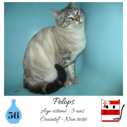 URGENCE EUTHANASIE ! Pelops est un mâle de 3 ans craintif (un comportement normal en fourrière) qui vous attend dans une fourrière du 56. ATTENTION SORTIE AU PLUS TARD LE 20/11/2020 (avant euthanasie) ! Pour adopter, c'est facile : ➡️ On se rend sur la page facebook d'Urgence Fourrière de Bretagne (UFB) -> https://www.facebook.com/sosfourrieresbreizh/ ➡️ On vient en message privé sur la page UFB ➡️ On remplit le questionnaire ➡️ Si le questionnaire est validé, on se rend disponible pour la pré-visite ➡️ On se rend aussi disponible pour venir chercher le loulou en fourrière Les chats sortent de fourrière primo-vaccinés et identifiés. Restera à charge de l’adoptant le rappel de vaccin et la stérilisation qui est OBLIGATOIRE. Les femelles en fourrière ayant été trouvées dans la rue, il y a fort à parier que nombre d'entre elles en âge de l'être soient gestantes ... ---- A PROPOS D'URGENCE FOURRIERE DE BRETAGNE (UFB) Nous sommes un COLLECTIF d'ASSOCIATIONS DE PROTECTION ANIMALE (qui rassemble notamment Moustaches et Compagnie, Bêtes de Scène, les Pachas, Chats Libres de Berné, etc, etc....) Le BUT de ce collectif d'associations est donc de SORTIR ces animaux des fourrières surchargées en les faisant ADOPTER de manière LEGALE par des familles ou en leur trouvant des FAMILLES D'ACCUEIL lorsque des places en association se libèrent.