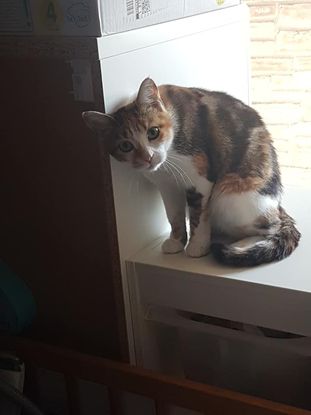 Clochette, jeune femelle sortie de la rue. Elle a été très craintive au début mais elle commence à faire confiance à l'humain. Elle est autonome mais câline si elle le souhaite ou pour dire bonjour. Elle connait les chats, les chiens et les lapins, ce ne sont pas ses grands copains mais si personne ne vient la chercher elle fait sa vie de son côté. Elle reste encore peureuse donc il lui faudra un coin à elle pour se remettre de ses émotions. Vaccinée, identifiée, stérilisée.