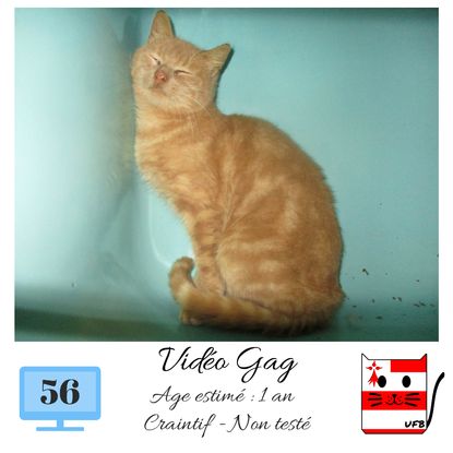 URGENCE EUTHANASIE ! Vidéo Gag est un mâle de 1 an craintif (un comportement normal en fourrière) qui vous attend dans une fourrière du 56. ATTENTION SORTIE AU PLUS TARD LE 27/11/2020 (avant euthanasie) ! Pour adopter, c'est facile : ➡️ On se rend sur la page facebook d'Urgence Fourrière de Bretagne (UFB) -> https://www.facebook.com/sosfourrieresbreizh/ ➡️ On vient en message privé sur la page UFB ➡️ On remplit le questionnaire ➡️ Si le questionnaire est validé, on se rend disponible pour la pré-visite ➡️ On se rend aussi disponible pour venir chercher le loulou en fourrière Les chats sortent de fourrière primo-vaccinés et identifiés. Restera à charge de l’adoptant le rappel de vaccin et la stérilisation qui est OBLIGATOIRE. Les femelles en fourrière ayant été trouvées dans la rue, il y a fort à parier que nombre d'entre elles en âge de l'être soient gestantes ... ---- A PROPOS D'URGENCE FOURRIERE DE BRETAGNE (UFB) Nous sommes un COLLECTIF d'ASSOCIATIONS DE PROTECTION ANIMALE (qui rassemble notamment Moustaches et Compagnie, Bêtes de Scène, les Pachas, Chats Libres de Berné, etc, etc....) Le BUT de ce collectif d'associations est donc de SORTIR ces animaux des fourrières surchargées en les faisant ADOPTER de manière LEGALE par des familles ou en leur trouvant des FAMILLES D'ACCUEIL lorsque des places en association se libèrent.
