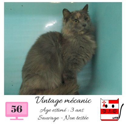 URGENCE EUTHANASIE ! Vintage Mecanic est une femelle de 3 ans sauvageonne (un comportement normal en fourrière) qui vous attend dans une fourrière du 56. ATTENTION SORTIE AU PLUS TARD LE 27/11/2020 (avant euthanasie) ! Pour adopter, c'est facile : ➡️ On se rend sur la page facebook d'Urgence Fourrière de Bretagne (UFB) -> https://www.facebook.com/sosfourrieresbreizh/ ➡️ On vient en message privé sur la page UFB ➡️ On remplit le questionnaire ➡️ Si le questionnaire est validé, on se rend disponible pour la pré-visite ➡️ On se rend aussi disponible pour venir chercher le loulou en fourrière Les chats sortent de fourrière primo-vaccinés et identifiés. Restera à charge de l’adoptant le rappel de vaccin et la stérilisation qui est OBLIGATOIRE. Les femelles en fourrière ayant été trouvées dans la rue, il y a fort à parier que nombre d'entre elles en âge de l'être soient gestantes ... ---- A PROPOS D'URGENCE FOURRIERE DE BRETAGNE (UFB) Nous sommes un COLLECTIF d'ASSOCIATIONS DE PROTECTION ANIMALE (qui rassemble notamment Moustaches et Compagnie, Bêtes de Scène, les Pachas, Chats Libres de Berné, etc, etc....) Le BUT de ce collectif d'associations est donc de SORTIR ces animaux des fourrières surchargées en les faisant ADOPTER de manière LEGALE par des familles ou en leur trouvant des FAMILLES D'ACCUEIL lorsque des places en association se libèrent.