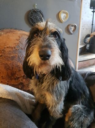 "Je n'aime pas la chasse, car j'ai peur des coups de feu, alors on m'a abandonné. J'aime le confort, j'aime me promener, j'aime qu'on me câline et j'aime tout le monde." Ma maladie fait que j'ai besoin d'une alimentation spécifique pour diminuer mes crises.