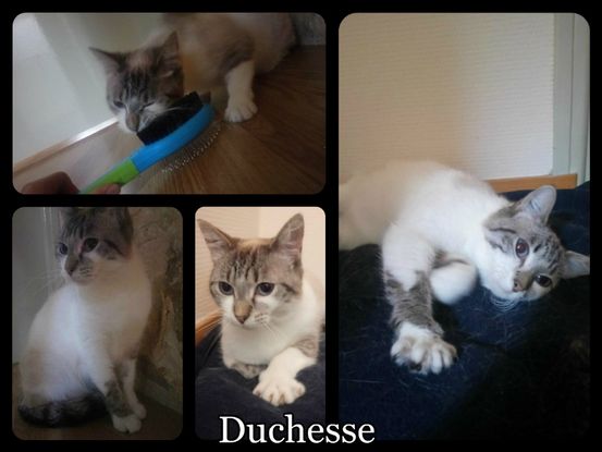 Duchesse aura 2 ans en juillet Elle espère d'ici là trouver SA famille. Douce, affectueuse, gourmande, elle aime que l'on s'occupe d'elle (caresses, brossage). C'est une petite douceur qui aura besoin d'un petit temps d'adaptation. Duchesse peut vivre en appartement, elle est négative fiv / felv. La belle aux yeux bleus se trouve en accueil entre Niort (79) et Poitiers (86) et à seulement 40min de Ruffec (16)