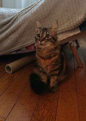 Bienvenue à la toute menue et jeune Chabelle entrée en trappe sur le site d'Ecully. Encore un brin timide dans sa famille d'accueil, elle se détend progressivement et se montre adorable !