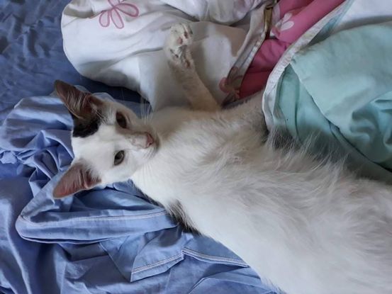 WINKY mâle blanc et noir de 9 mois joueur, hyper sociable, ok chiens et chats. Castré et testé fiv et felv negatifs