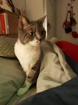 Elle a été adoptée à 6 mois mais ne s'est jamais fait à la vie avec sa copine chat. Elle s'isolait de plus en plus et devenait agressive envers l'autre chatte.