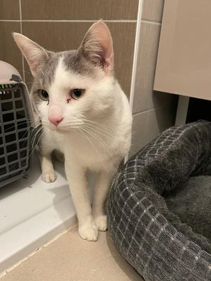 Il a été trouvé errant il y a 2 mois, la personne étant allergique elle ne pouvait pas le garder.