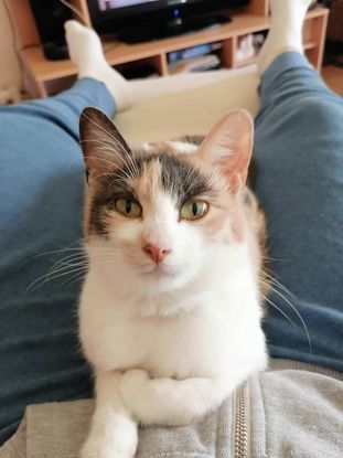 Zabelle, jolie et câline petite femelle de 1 an toujours sur les genoux de sa famille d'accueil. Ok chats visible dans sa famille d'accueil sur Gleizé