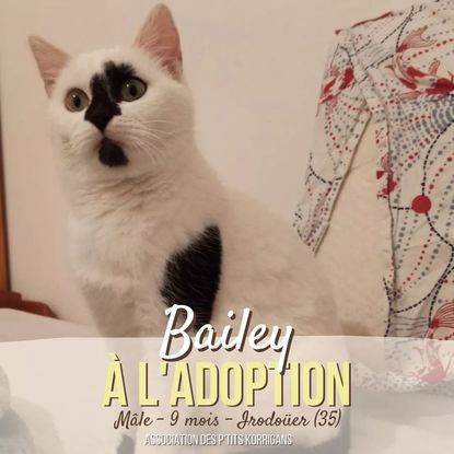 Il attend sa famille pour la vie depuis le 07/01/2021 BAILEY est un jeune chat très timide. Il s'est habitué à vivre avec d'autres chats et aime jouer avec eux... mais préfère rester tranquille sur un bout de couette ou près d'une fenêtre au soleil. Il est encore timide avec l'humain, sauf s'il s'agit d'attaquer les orteils, là il se lâche : c'est bien trop drôle ! Il se laisse toucher le bout du nez s'il se promenade dans la maison et accepte avec plaisir les grattouilles sous le menton et derrière les oreilles lorsqu'on vient le trouver pendant sa sieste. Il est en famille d'accueil à IRODOUËR (35) Plus d'informations : https://ptits-korrigans.forums-actifs.net/t5806-bailey