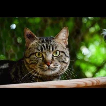 CHARLI mâle timide et discret. Ce jeune chat apprécie la présence de ses congénères, en particulier NUTS un autre mâle de l'association (le tigré debout sur la deuxième photo). Ils sont maintenant inséparables (ils dorment, jouent ensemble.). Nous ne connaissons pas son comportement avec les chiens. Notre but serait de trouver une même famille pour ses deux garçons.