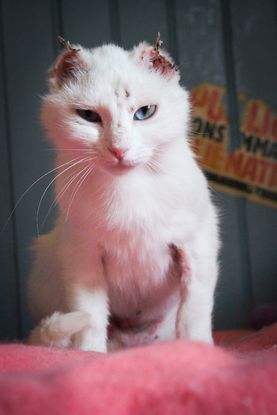DORA Voici DORA petite minette errante à Créot 71 récupérée chez une dame qui la nourrissait depuis des mois . Dora était très maigre et gestante , pleine de puces et de vers . Elle avait comme beaucoup de chats blancs des lésions cancéreuses aux 2 oreilles qui ont été opérées lors de sa stérilisation .. Et nous nous sommes vite aperçu que Dora était sourde . C'est une minette dont l'âge est estimé à 3 ans , très caline mais aussi très discrète sauf quand elle miaule car elle miaule très fort mais rarement ... Dora commence à jouer un peu et cherche le contact avec ses congénères .. Elle est indifférente aux chiens Encore un peu craintive quand elle voit une main , elle aime quand même beaucoup les caresses mais ne veut pas du tout être portée. DORA est testée fiv felv négatifs et débutera ses vaccins la semaine prochaine , elle est bien sûr stérilisée et identifiée Nous cherchons pour Dora une famille calme avec un autre chat et sans accès extérieur ou alors entièrement sécurisé Elle est à adopter sous contrat associatif avec participation aux frais vétérinaires. en famille d'accueil à COUCHES 71. Adoption dept 71 et voisins Merci de partager. Avant toute demande d'adoption merci de lire nos conditions d'adoption ici: https://www.facebook.com/1099279660228946/posts